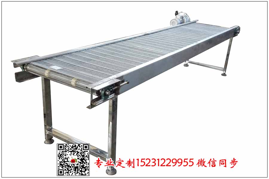 羊毛分揀線采用不銹鋼輸送帶來輸送,其結(jié)構形式可以采用鏈條式鋼絲編織型輸送網(wǎng)帶,該輸送網(wǎng)帶孔徑可調(diào),絲徑可調(diào),鏈條節(jié)距可調(diào),訂購隨意簡單,以下是客戶訂購的鏈條式不銹鋼網(wǎng)帶的訂單數(shù)據(jù),希望能給大家做個參考: 鏈條式不銹鋼輸送帶總寬為800毫米,長度為30米 鏈條節(jié)距為38.1毫米(滾珠到滾珠的距離) 鋼絲輸送網(wǎng)帶孔徑為10*15毫米,孔徑可以根據(jù)自己的需要定制不銹鋼網(wǎng)帶的絲徑為1.2毫米,支軸直徑為8毫米,因為輸送網(wǎng)帶相對較寬,因此支軸的選擇不能太細,否則會出現(xiàn)塌腰的情況,支軸之間的距離為15公分左右。